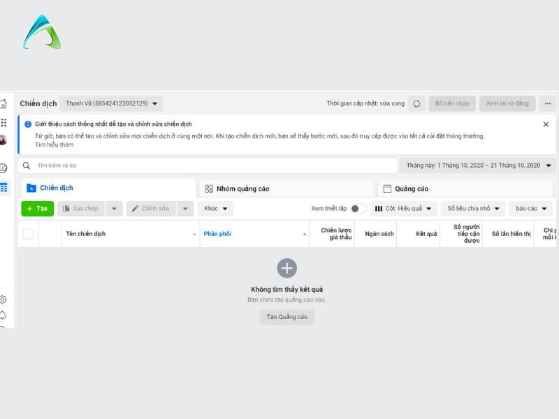 - Bước 2: Bạn nhấn vào biểu tượng dấu cộng (+) để bắt đầu tạo quảng cáo ở góc bên trái của màn hình.